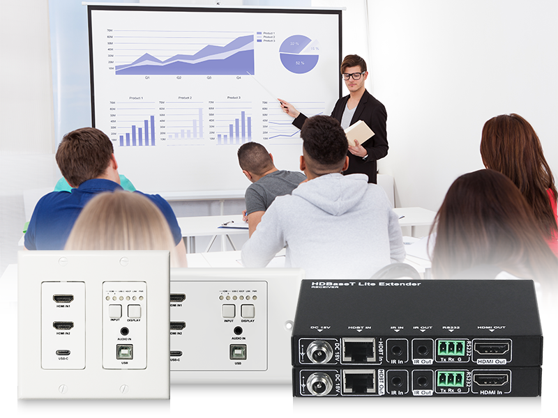 針對教育提供一體化解決方案,包括支持老師教學內容及學生分享內容有線&無線接入、切換、控制及多屏對比等,完美支持智慧互動課堂